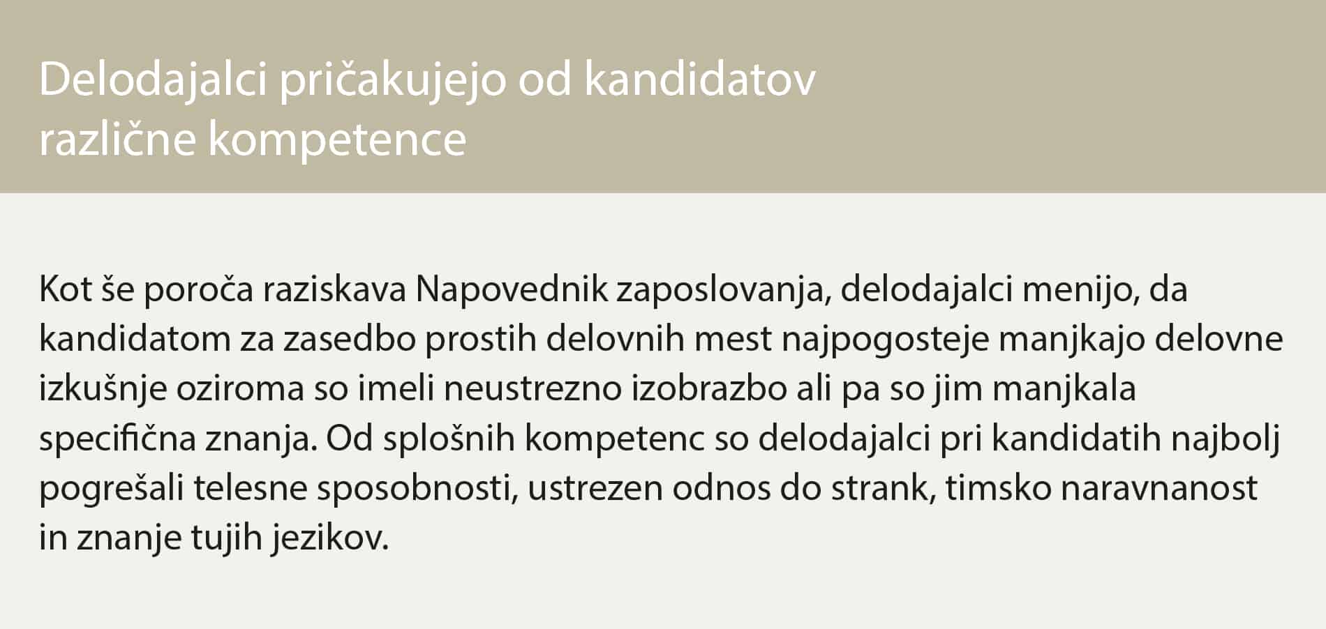 Delodajalci bodo iskali kadre, ki znajo povezati različna znanja. Številna podjetja se širijo, nekaj večjih podjetij prihaja v Slovenijo in že rekrutira zaposlene. V prihodnosti je pričakovan velik kadrovski primanjkljaj, zato bodo podjetja morala ponuditi boljše pogoje dela. Tako napoveduje za leto 2017 agencija za zaposlovanje Adecco Slovenija, podobno ManpowerGroup. Slednji za prvo četrtletje napoveduje najmočnejše napovedi zaposlovanja v zadnjih šestih letih, odkar izvajajo raziskavo za celotno Slovenijo. Prav tako optimistične napovedi objavljata raziskavi Zavoda RS za zaposlovanje in ISR – Inštituta za strateške rešitve.