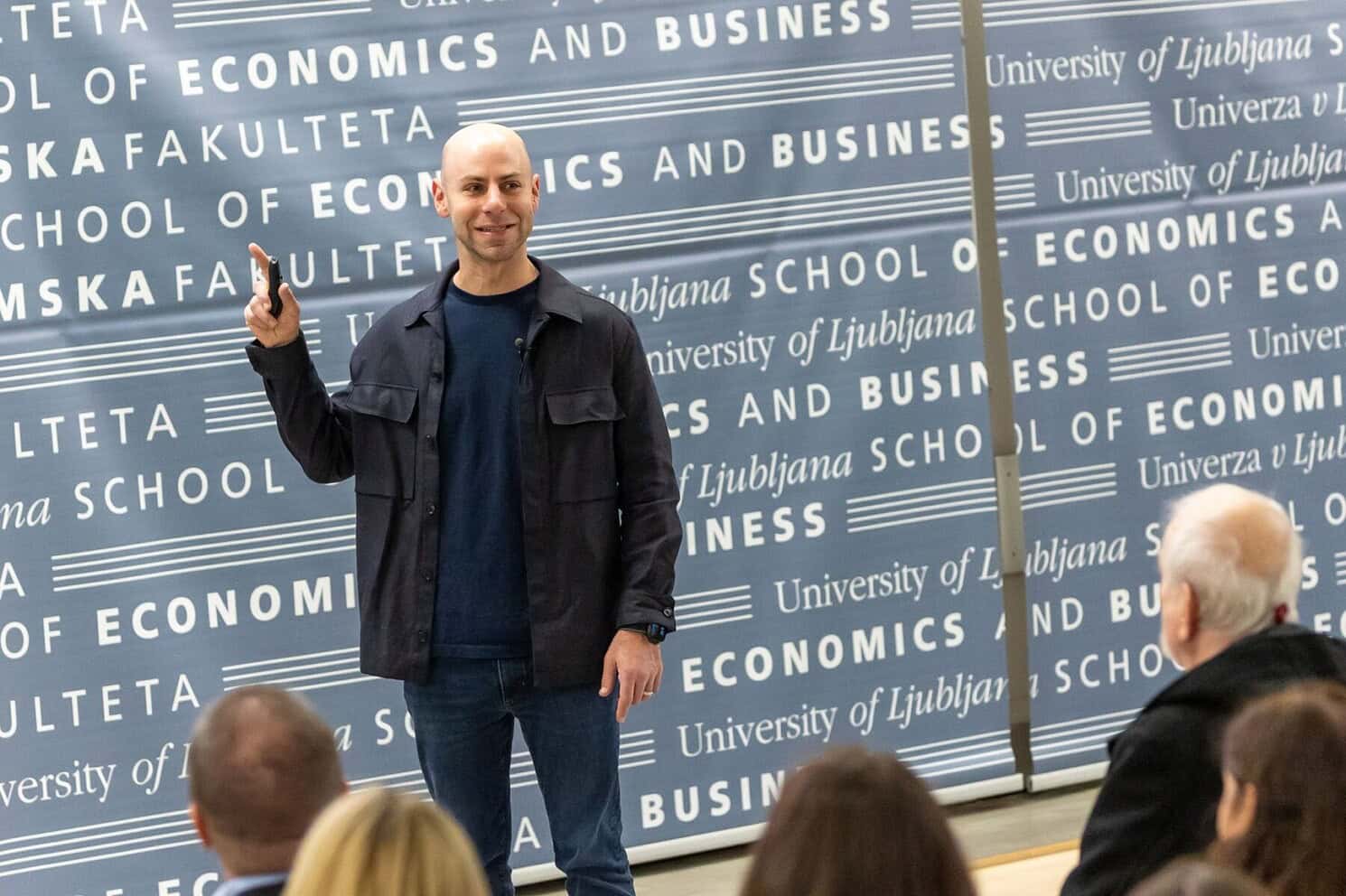 Čas branja 6 minAdam Grant, svetovno znani ameriški poljudnoznanstveni avtor in profesor na Wharton School Univerze v Pensilvaniji, specializiran za organizacijsko psihologijo, je bil 11. novembra 2025 gostujoči predavatelj na Ekonomski fakulteti Univerze v Ljubljani. Gostili so ga v sklopu 80-letnice delovanja fakultete, in sicer na pobudo prof. dr. Mihe Škerlevaja in prof. dr. Mateja Černeta.