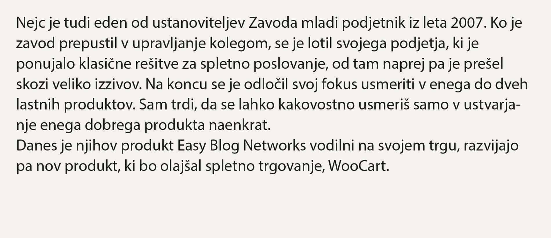 Sam imam rad takšen način dela, pa tudi od samega začetka smo imeli stranke iz tujine in delali zanje na oddaljen način. Poleg tega od nekdaj delamo na odprtokodnih sistemih in tam sem se naučil, da je oddaljeno delo nekaj povsem normalnega in povsem transparentnega. Sodobni načini dela v tem sistemu predstavljajo virtualno skupnost ljudi, ki programirajo od vsepovsod, tudi kot hobi. Vedno sem se spraševal, kaj nekoga motivira, da dela na tak način povsem prostovoljno. Ko pa prvič narediš nekaj na takšen način in dobiš priznanje, da tvoj izdelek (v tem primeru kodo) uporabljajo za nekaj koristnega, si izpolnil svoje poslanstvo.